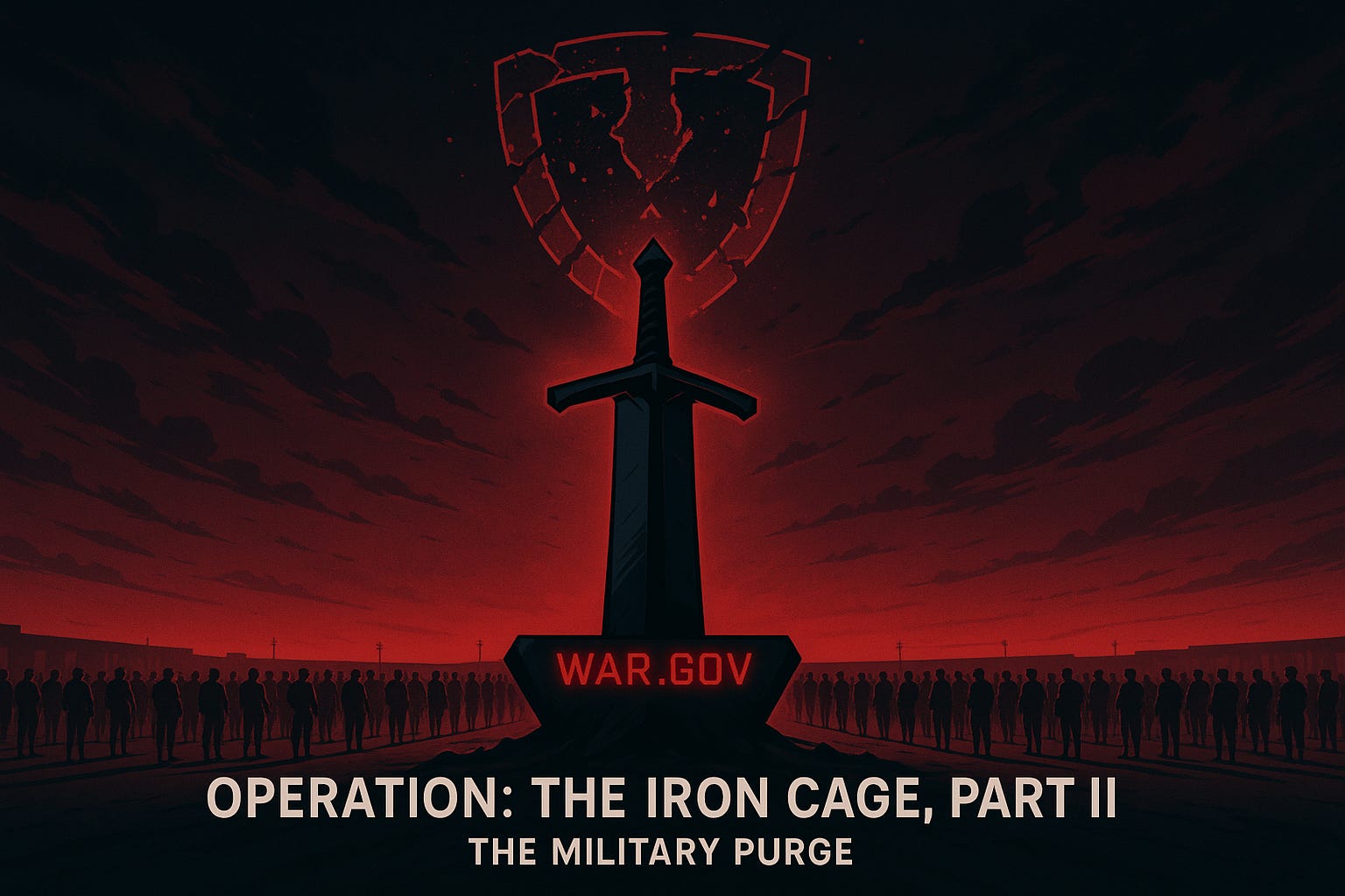 Part I was about how they hollowed out the civilian state. Part II is about how they are claiming its sword. The Iron Cage is nearly complete.
