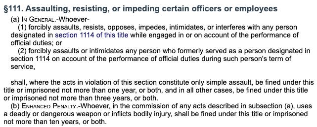 Assaulting, Resisting, or Impeding Federal Officers — 18 U.S.C. § 111