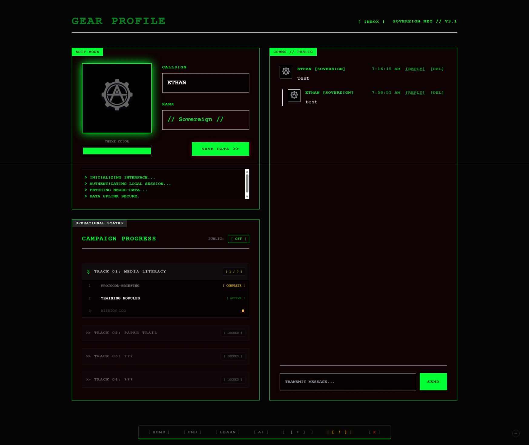 Notice the login button? The site now tracks your progress. As you read the Codex and pass the training drills, your Clearance Level will rise. We are gamifying the exit from the Matrix.