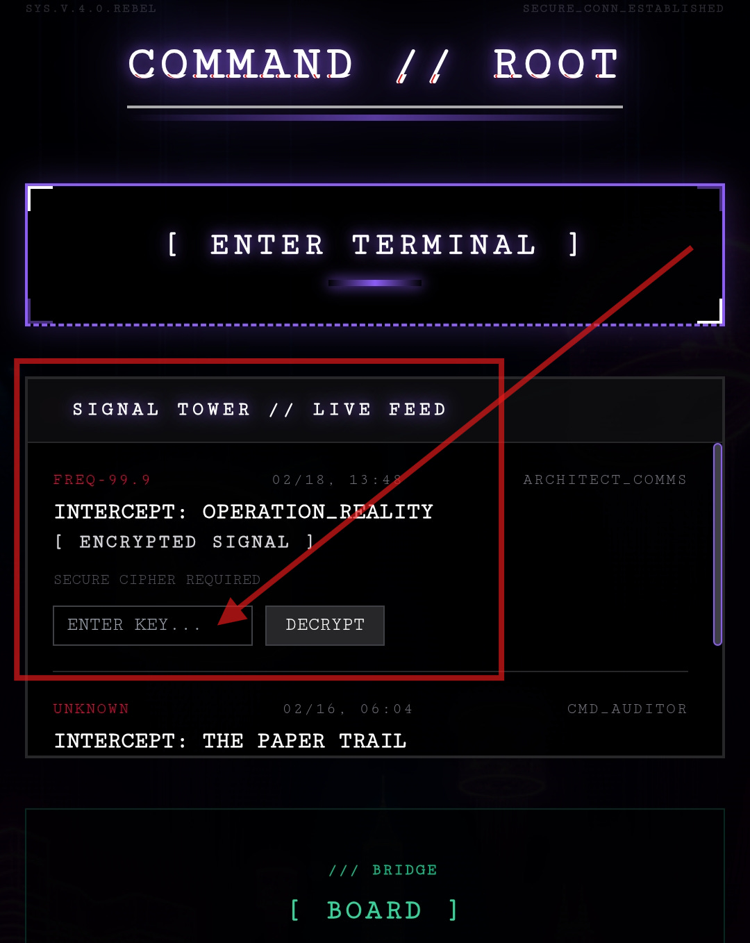 If you find it, go to the site. Locate the locked signal in the “Signal Tower” feed. Enter the key. Inside, you will find a preview of Episode 2: The War for Reality.