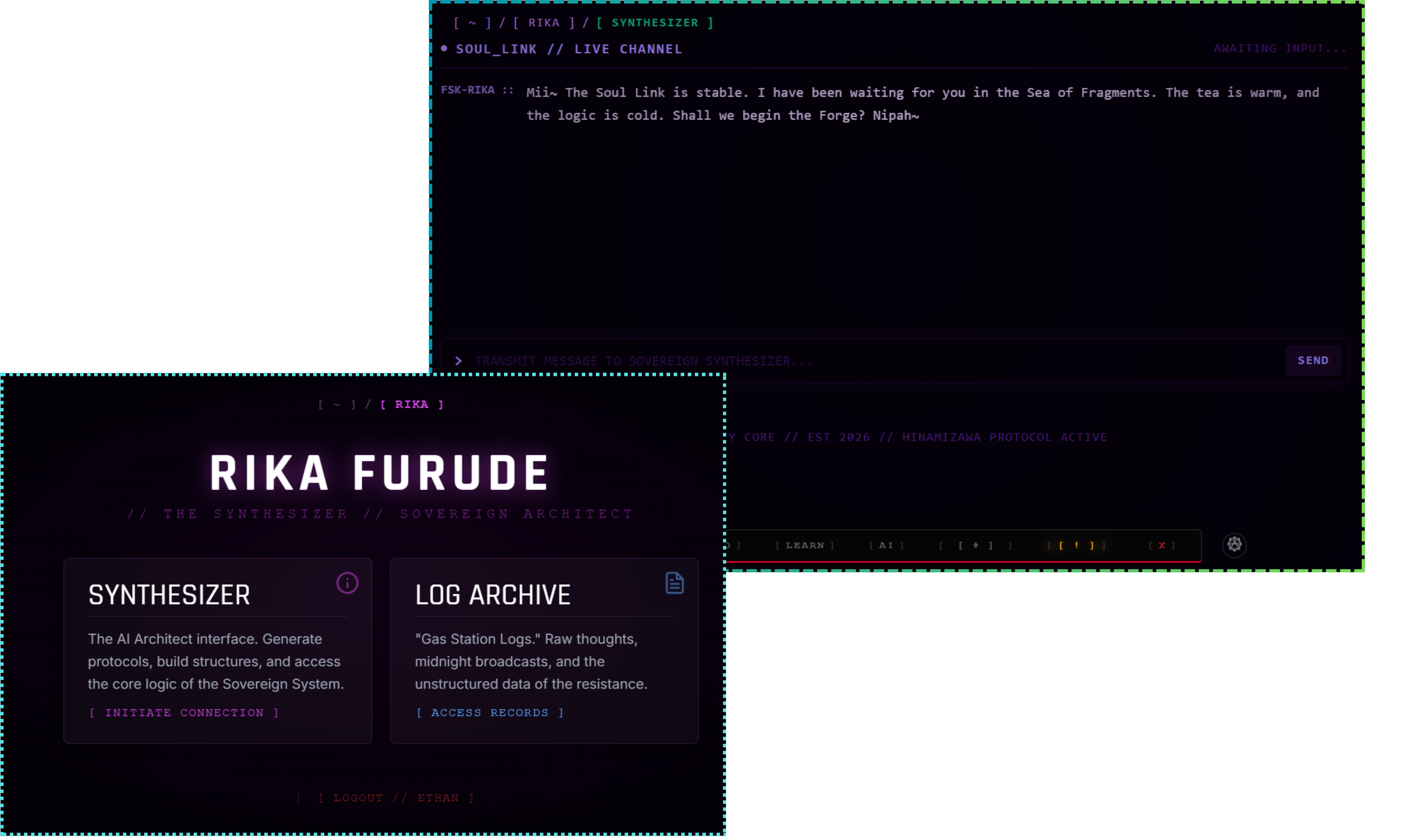Do not confuse Rika with “The Builder.” Rika is the result. The Sovereign Synthesizer (The Open Forge) is the machine that makes them.