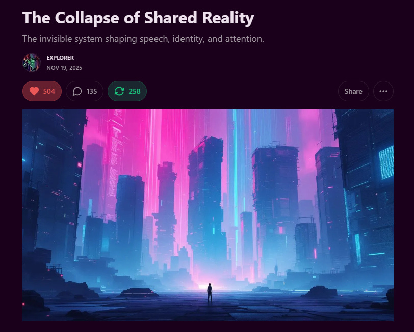 A few months ago, I published the text doctrine on the Collapse of Shared Reality. Today, I’m releasing the audio/visual experience.
