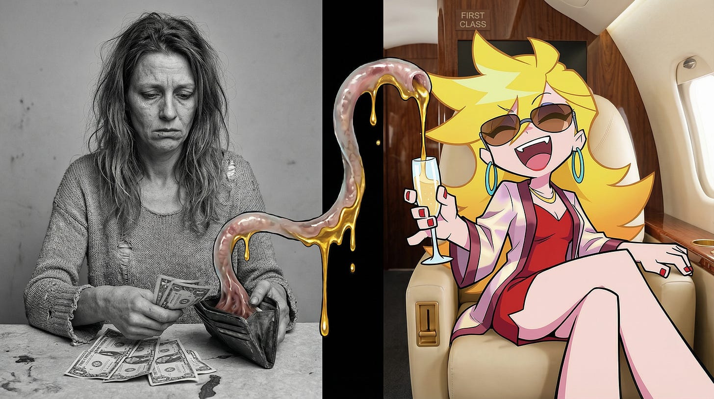 It’s gamified poverty. And you’re playing on the server that cheats. Want a macaron?”