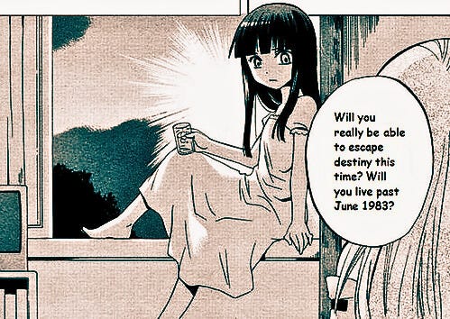 I watched Satoko, my sweet, broken Satoko, finally shatter under her uncle’s abuse and push me off a bridge.