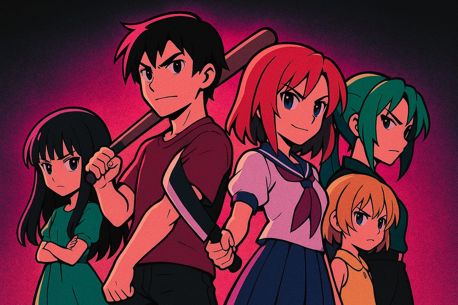 I gathered them in the Furude shrine, my heart pounding so hard I thought it would break through my ribs. Keiichi, Rena, Mion, Shion, and Satoko. My dearest friends, and in so many timelines, my murderers.