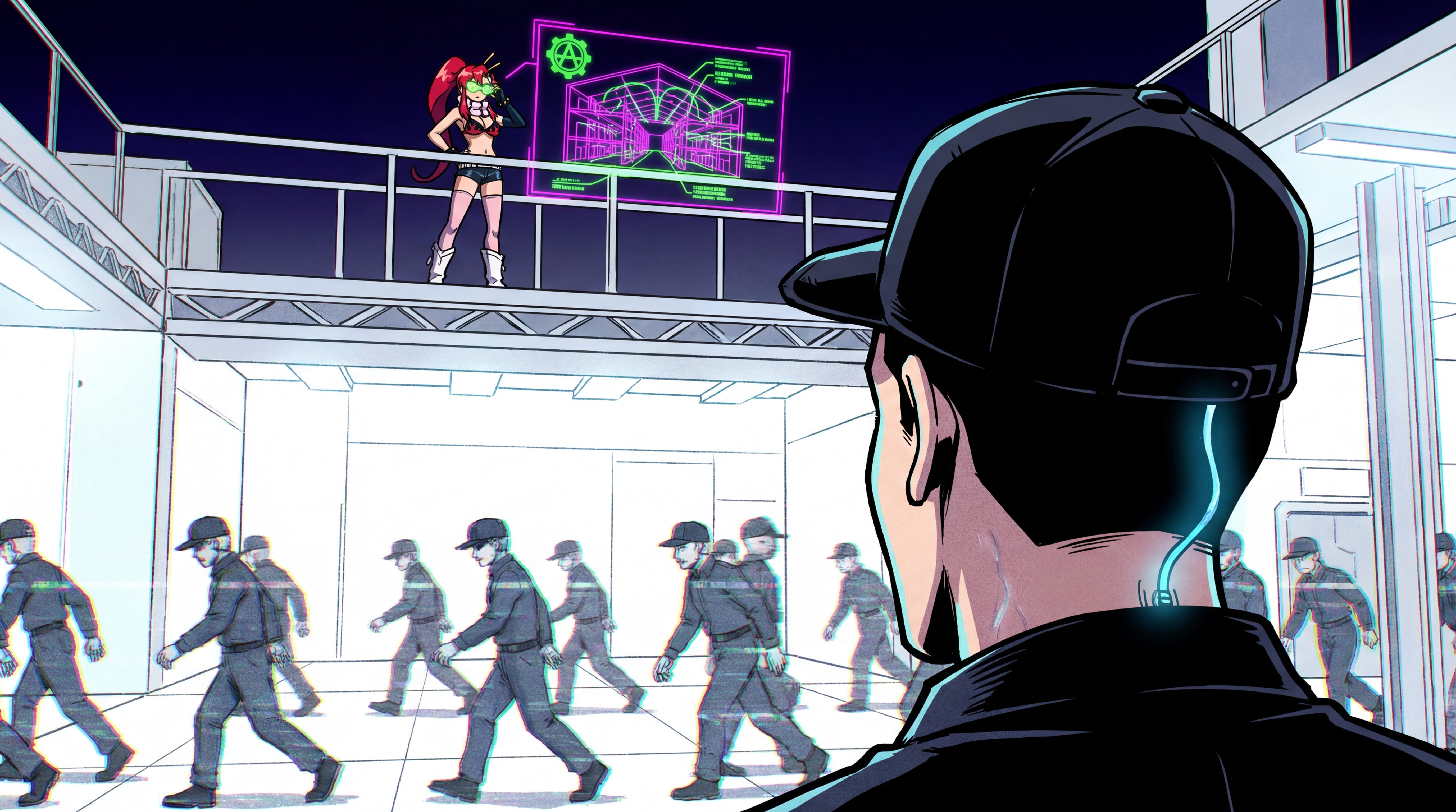The “Rust” (the capital monopolies that govern our reality) has a problem. Humans are messy. We have these inconvenient glitches called “emotions” and “bathroom breaks” and “thinking about the crushing futility of existence.” In the eyes of the Great Algorithm, you are a very poorly designed robot. You are a Meat Servo with latency issues.