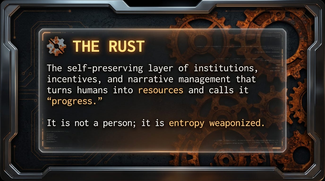 The Rust relies on you being a passive consumer of their reality. It needs you to doubt your own senses. It needs you to believe the map on the screen is more real than the hunger in your body or the fragility in your finances.