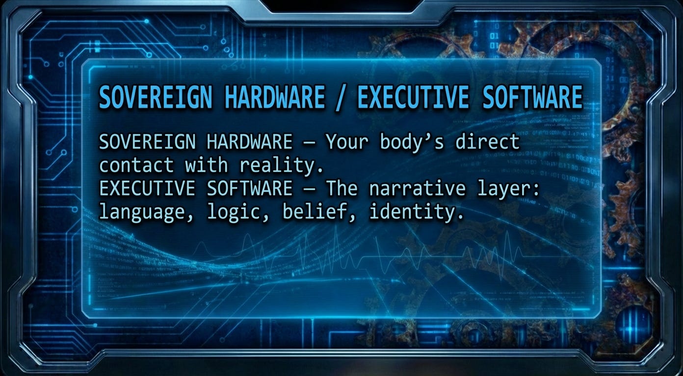 It’s you. Specifically: the connection between your Sovereign Hardware (body, gut, senses) and your Executive Software (conscious mind, story, interpretation).