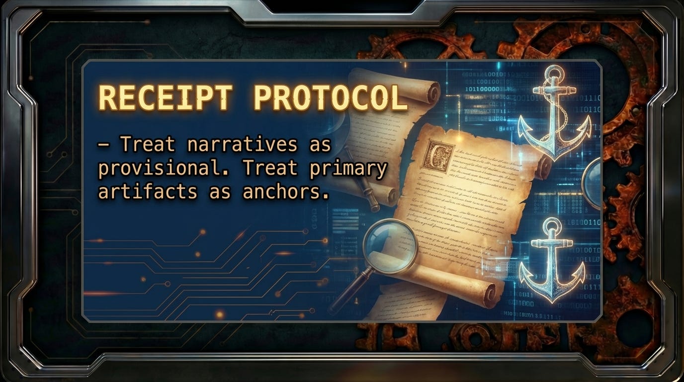 Treat narratives as provisional. Treat primary artifacts as anchors.