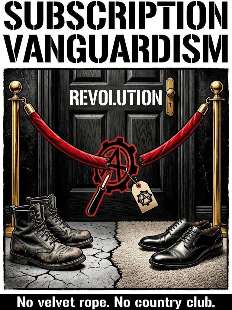 🔗 The Velvet Rope Paradox: Socioeconomic Barriers and the Class Divide in Modern Subscription Activism (PDF) — the ammunition for Subscription Vanguardism / why paywalled “movement intel” turns into a PMC-only club.