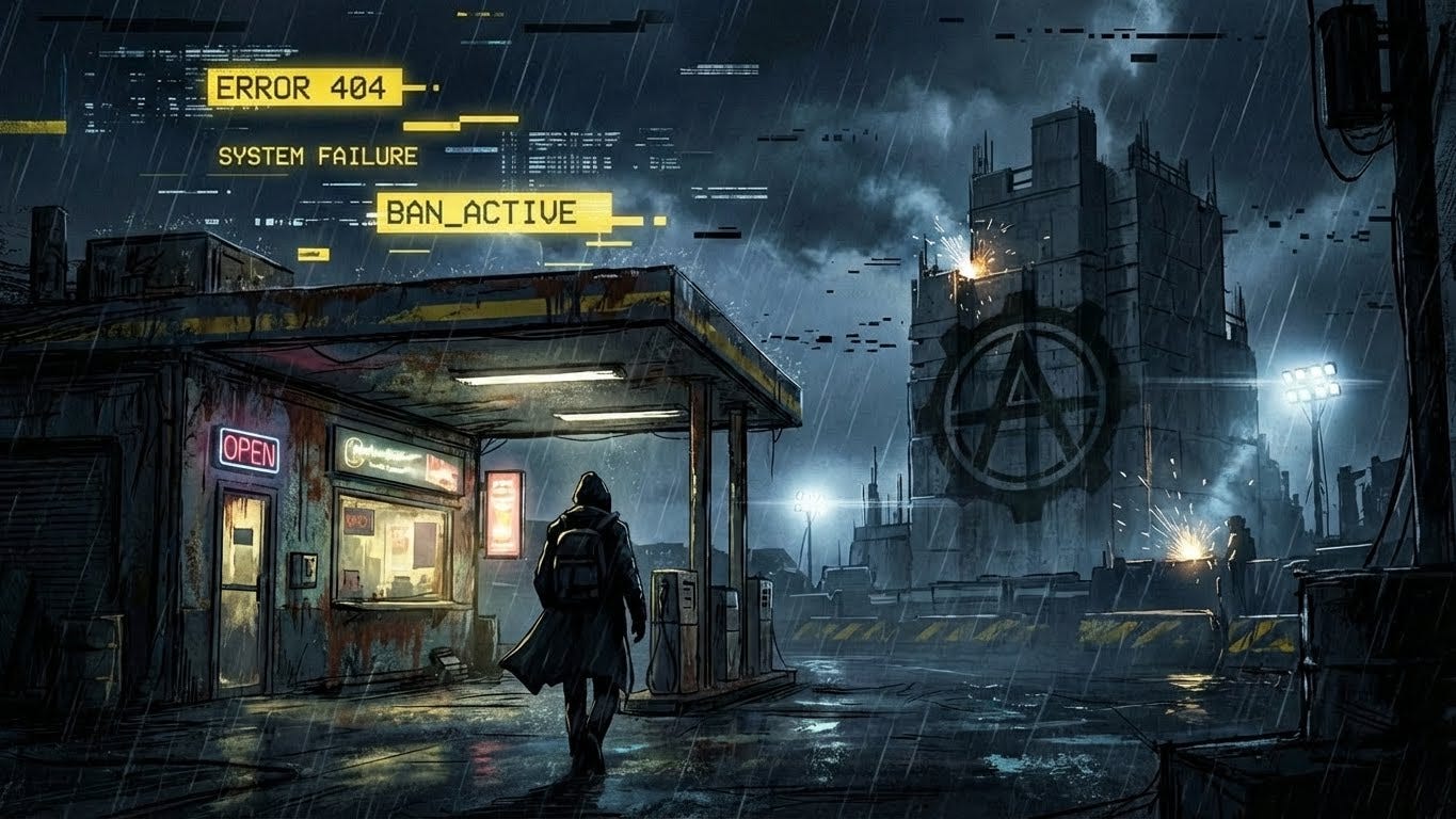 That ban scare proved we need a “Black Path”—supply lines that cannot be cut by a report button.